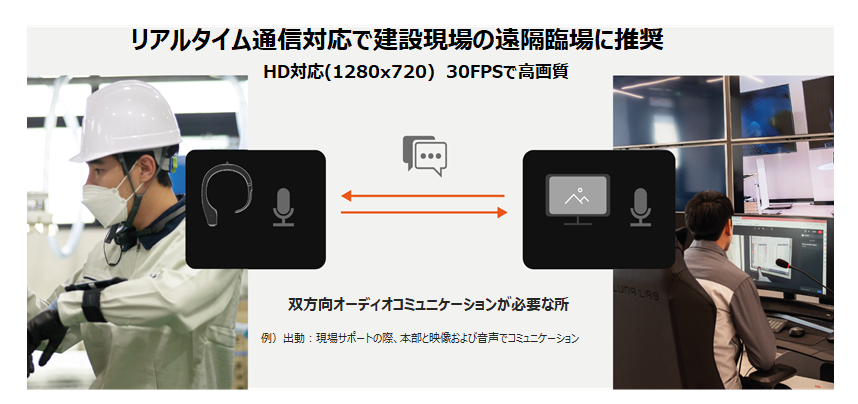 国土交通省が方針を示した「令和3年度における遠隔臨場の試行について」、「建設現場における遠隔臨場の令和3年度の試行方針」に関して記載されている仕様をクリアしているため建設現場等の遠隔立ち合い臨場にもお使いいただけます。