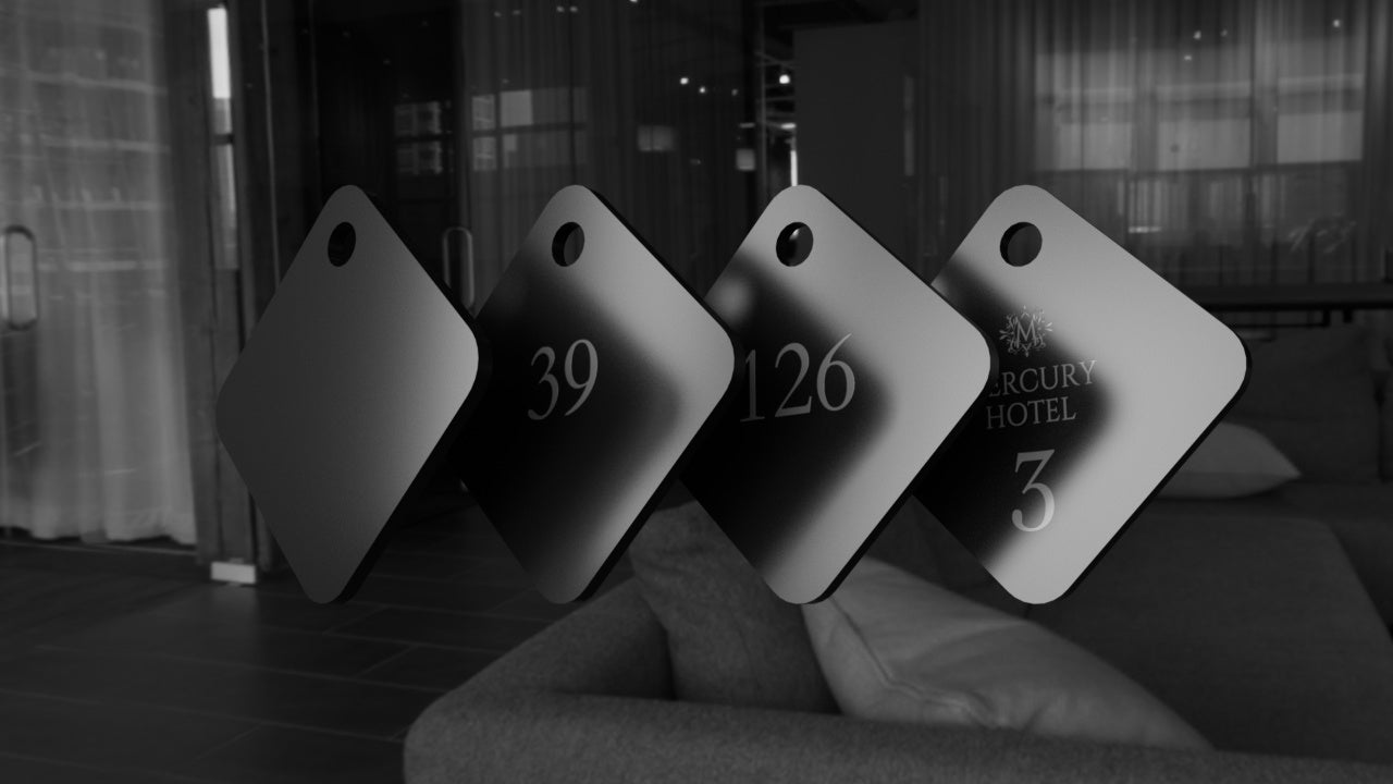 マーキュリーアドのクローク札は、黒両面マットの素材を使用した菱形デザインが特徴です。高級感のあるマットな質感が、店舗やホテルに洗練された印象を与えます。また、ロゴやナンバーの入れ込みも可能で、ブランド力をさらに強化するアイテムとしてご活用いただけます。