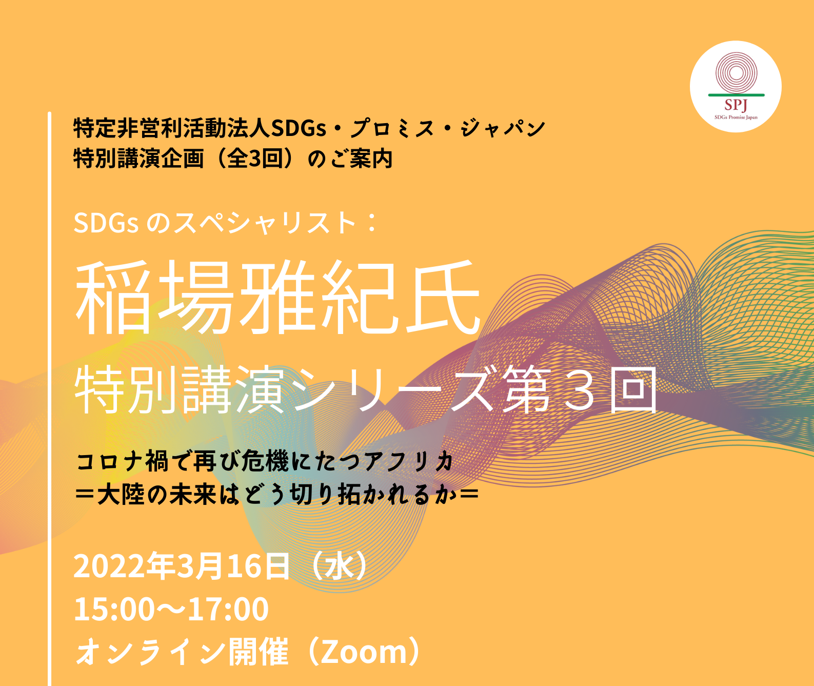2022年3月16日(水)15:00~17:00、 SDGsのスペシャリスト:稲場雅紀氏(アフリカ日本協議会 国際保健部門ディレクター)をお招きして、特別講演シリーズ第3回を開催いたします!
