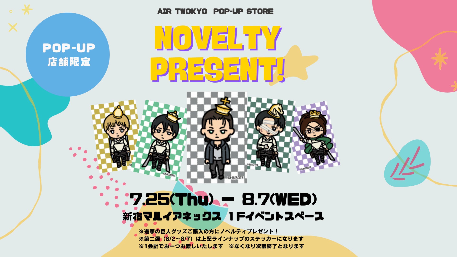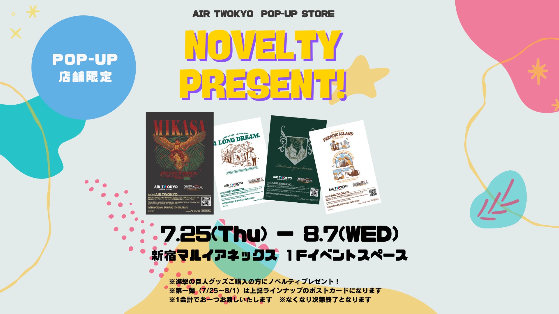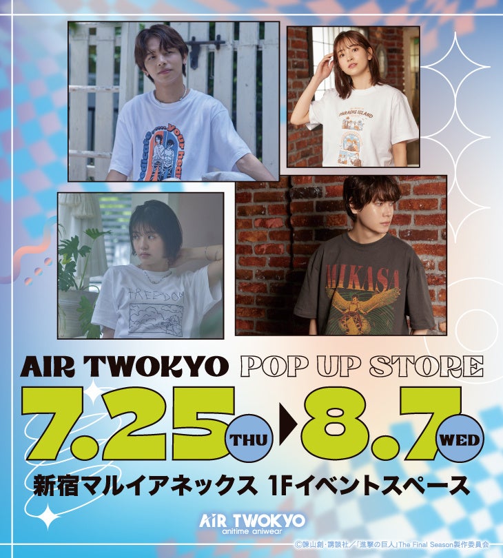 この度、AIR TWOKYO(エアトゥーキョー)二回目となるPOP UP STOREが2024年7月25日(木)~2024年8月7日(水)の期間、新宿マルイアネックス 1Fイベントスペースにて、人気アニメのアパレル、雑貨を多数ラインナップしたポップアップショップをオープンいたします。