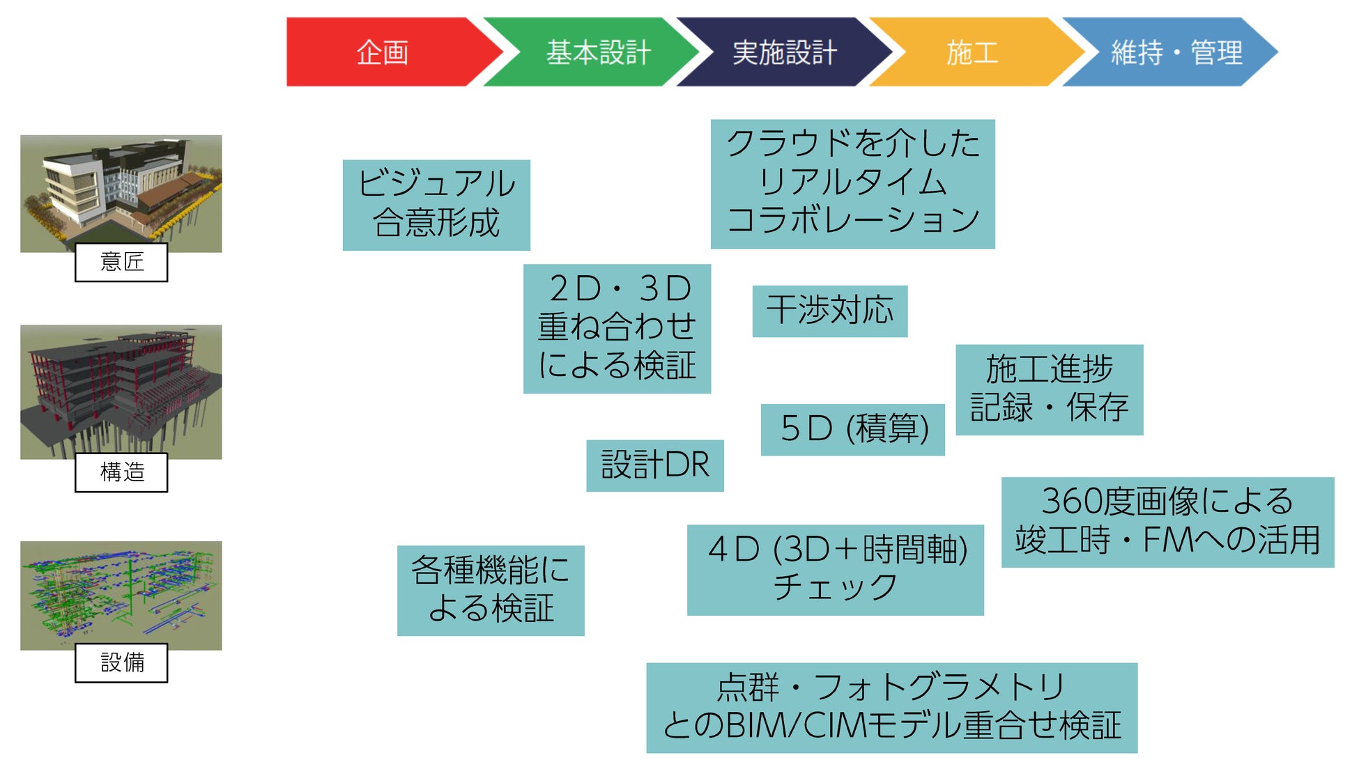 ⑤ 建設ライフサイクルに合わせて、各種機能で実務に役立つ