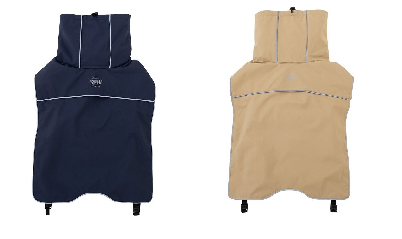MANDARINE BROTHERS定番の「スキンタイト®シリーズ」から汚れや毛が付きにくい撥水タイプ「ウォーターリペレントスキンタイト®スーツ」が新登場。フィット感とストレッチ性に優れアクティブな動きにも対応するアウトドアに最適なウエアです。水遊び以外にも雨上がりやドッグランなど汚れが気になる様々なシーンに。他にも、頭から被ってお腹の部分で留めるだけのツータッチタイプのレインウェアは、シックなカラーリングでパイピングは光を反射するリフレクター機能つき。撥水生地と保温効果のある裏地を組み合わせた中綿入りジャケットは、軽くて着せやすいラップタイプのアウターです。