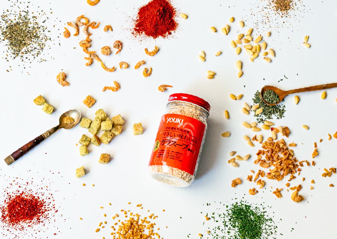 今回のコラボイベントは、ユウキ食品「やさしい味わいのガラスープ(以下ガラスープ)」と100本のスプーンで行ってきた、絵本仕立てのレシピプロジェクト「100の食卓」がお届けするオリジナルふりかけをつくるワークショップです。