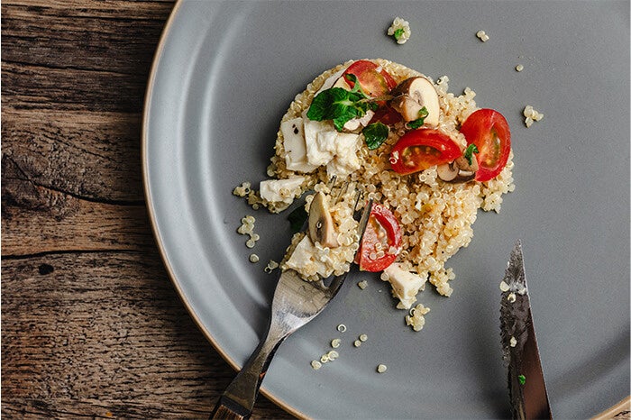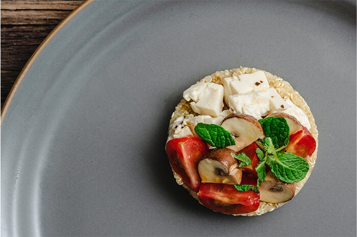 - マッシュルームのピクルスと キヌアのサラダ 豆腐のフェタ