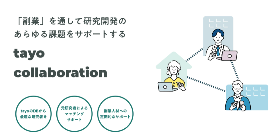 「副業」が繋ぐ、新しい形の産学連携。株式会社tayoは企業向けの研究者紹介サービス「tayo collaboration」をリリースします。