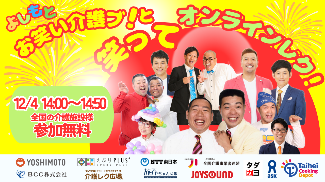 主催:吉本興業株式会社、NTT東日本、BCC株式会社、一般社団法人全国介護事業者連盟、株式会社エブリ・プラス