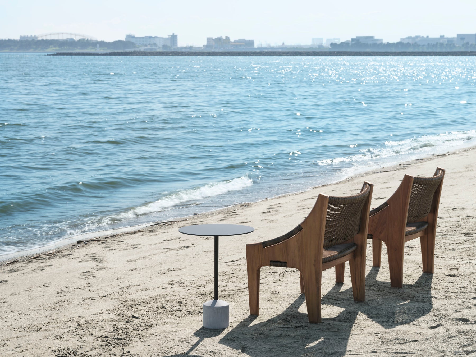 鹿児島県の最南端にある奄美群島に属する島、与論島。サンゴ礁が隆起してできた島で、白い砂浜と透明度の高い海の美しさから“東洋の真珠”とも呼ばれています。この与論島にて大城氏が初めて手がけた建築作品と共に「ヨロン ラウンジチェア」が誕生しました。南国特有の厳しい自然環境を凌ぐ重量感のある建築に相応しく、どっしりと地に足をつけたフォルムは、ゆったりとした座り心地を実現し、日々の喧騒から離れて大自然に身を委ねるようなリラックスしたひとときを演出します。