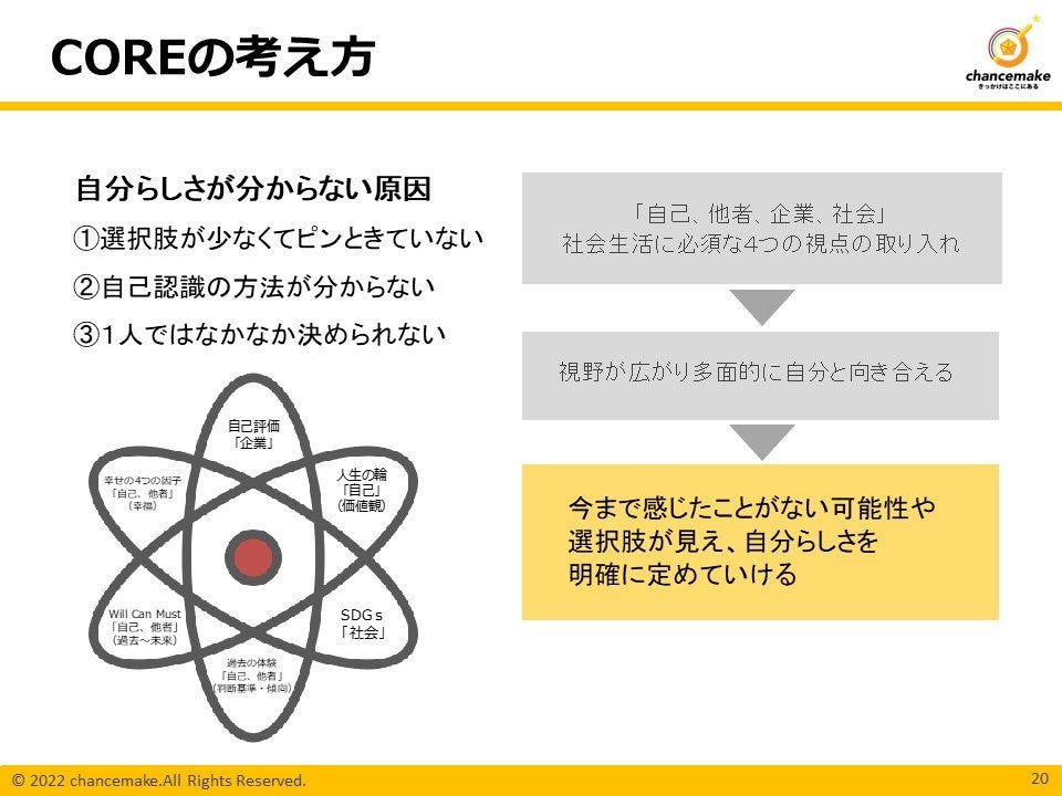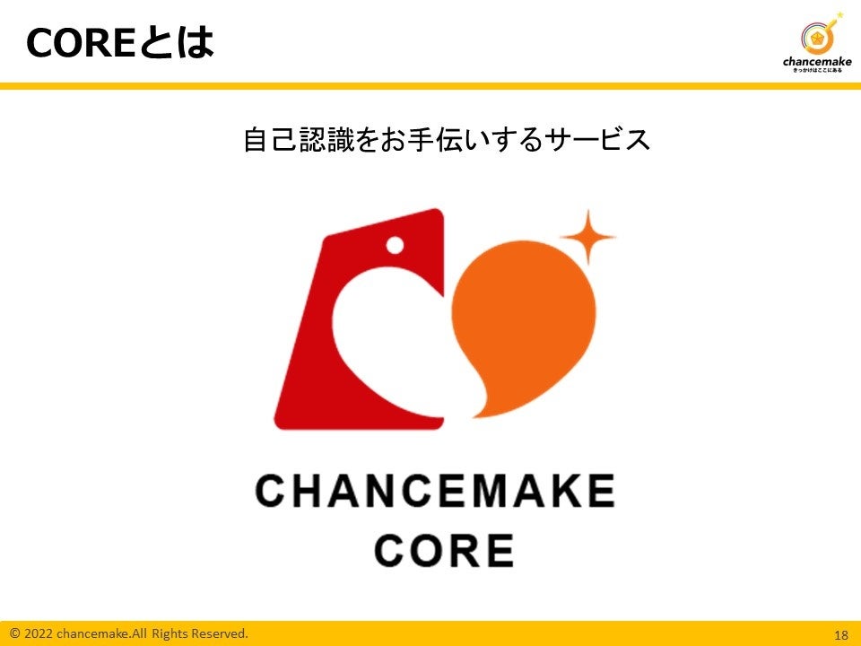 この自己認識を支援するために生まれたのが、chancemakeの"CORE"です。
