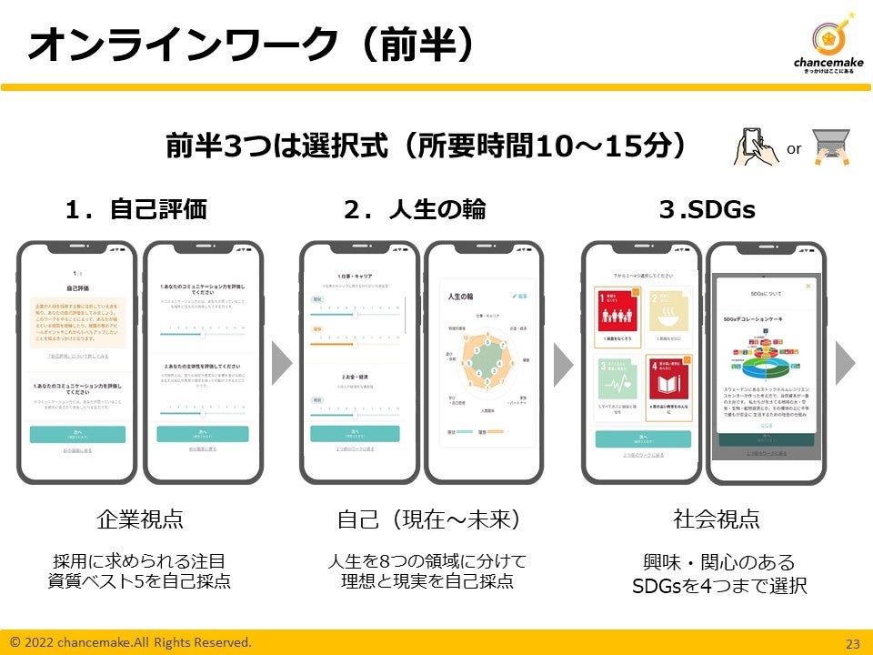 ここからは自己実現のきっかけを提供するチャンスメーカーを増やし、自己実現したいクライアントと出会える機会を創出し、そこで得られる当社ならではの1次データを個人や企業向けに2次活用することで、「いい人×いい会社×いい仕事」を生み出し、三方良し(売り手よし、買い手よし、世間よし)の精神で社会貢献していきます。