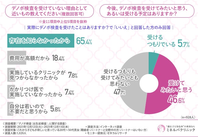 そこで今回、ミネルバクリニック(https://minerva-clinic.or.jp/)を運営する医療法人社団ミネルバは、これから子どもが欲しいと思っている20代~50代の男性を対象に「デノボ検査(出生前検査)」に関する調査を実施しました。