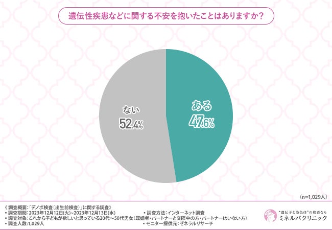 「遺伝性疾患などに関する不安を抱いたことはありますか?」と質問したところ、約半数の方が『ある(47.6%)』と回答しました。