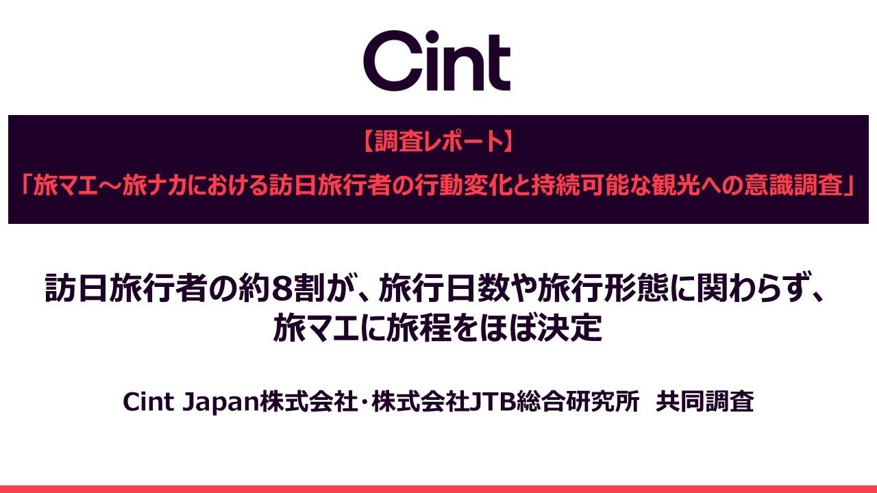 訪日旅行者の約8割が、旅行日数や旅行形態に関わらず、旅マエに旅程をほぼ決定 | Cint Japan株式会社・株式会社JTB総合研究所による共同調査