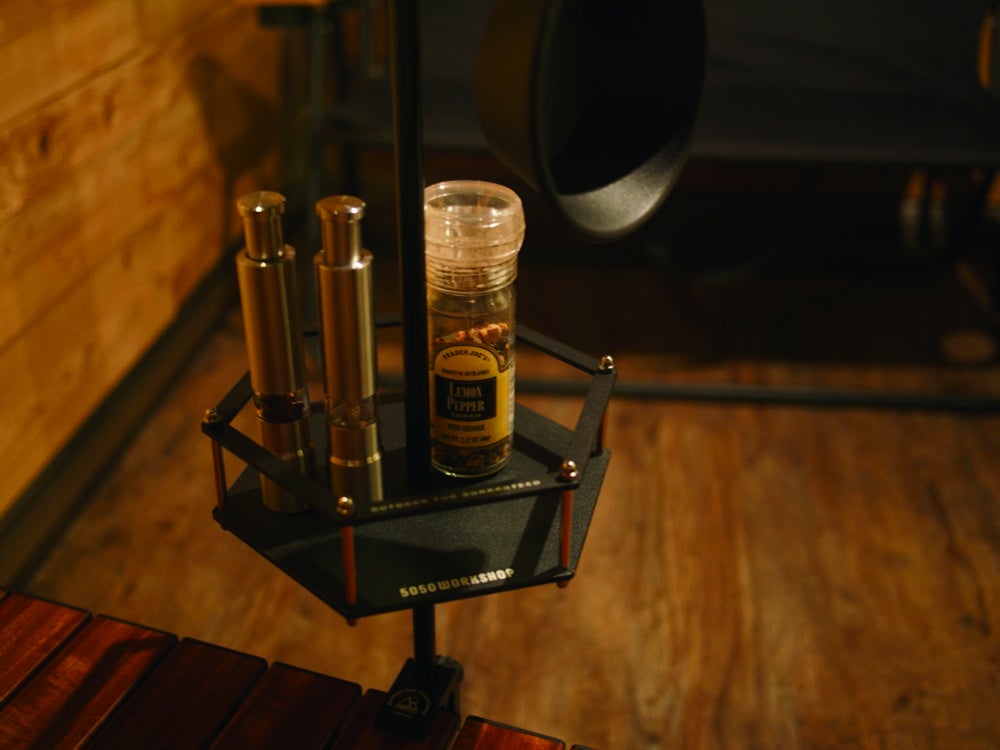 - 上段にスリットがあるので、シェラカップやちょっとした小物が吊るせる