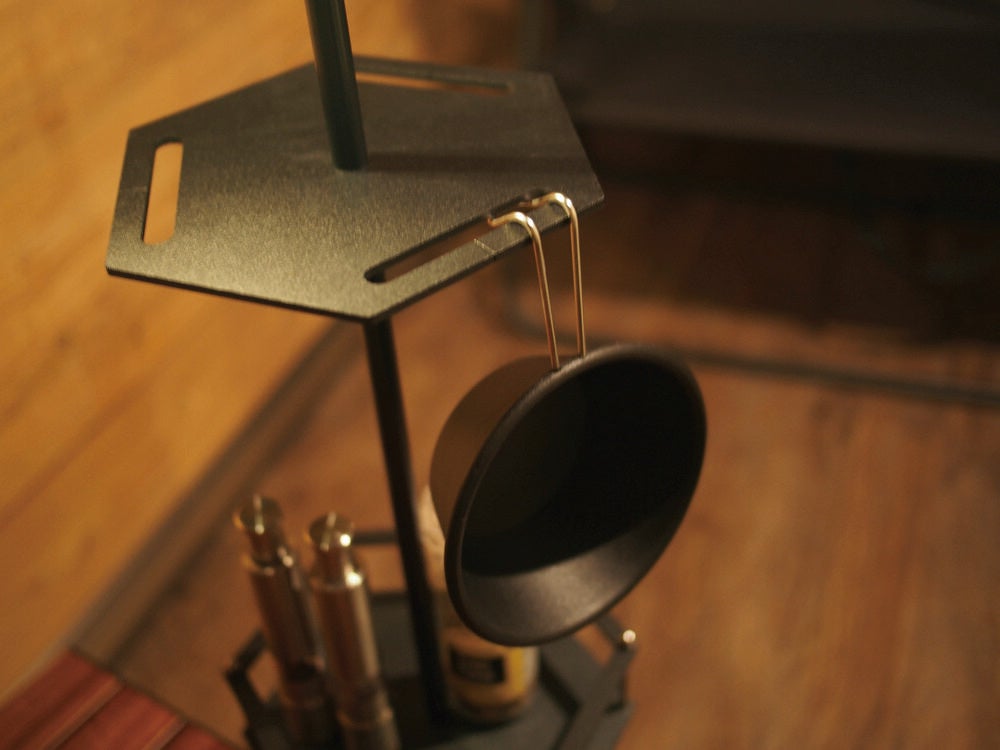 スタンドのジョイント部分にプレートを挟み、小物を置くことが可能。