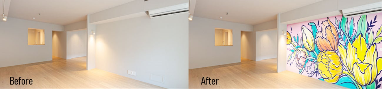 リノベーションや注文住宅は1点ものの建物であり、施主それぞれのライフスタイルや趣味嗜好が大きく反映した施工になります。そこには利便性はもちろんオシャレさや独自性などもあり、壁面アートとリノベーションは非常に親和性があると考えています。