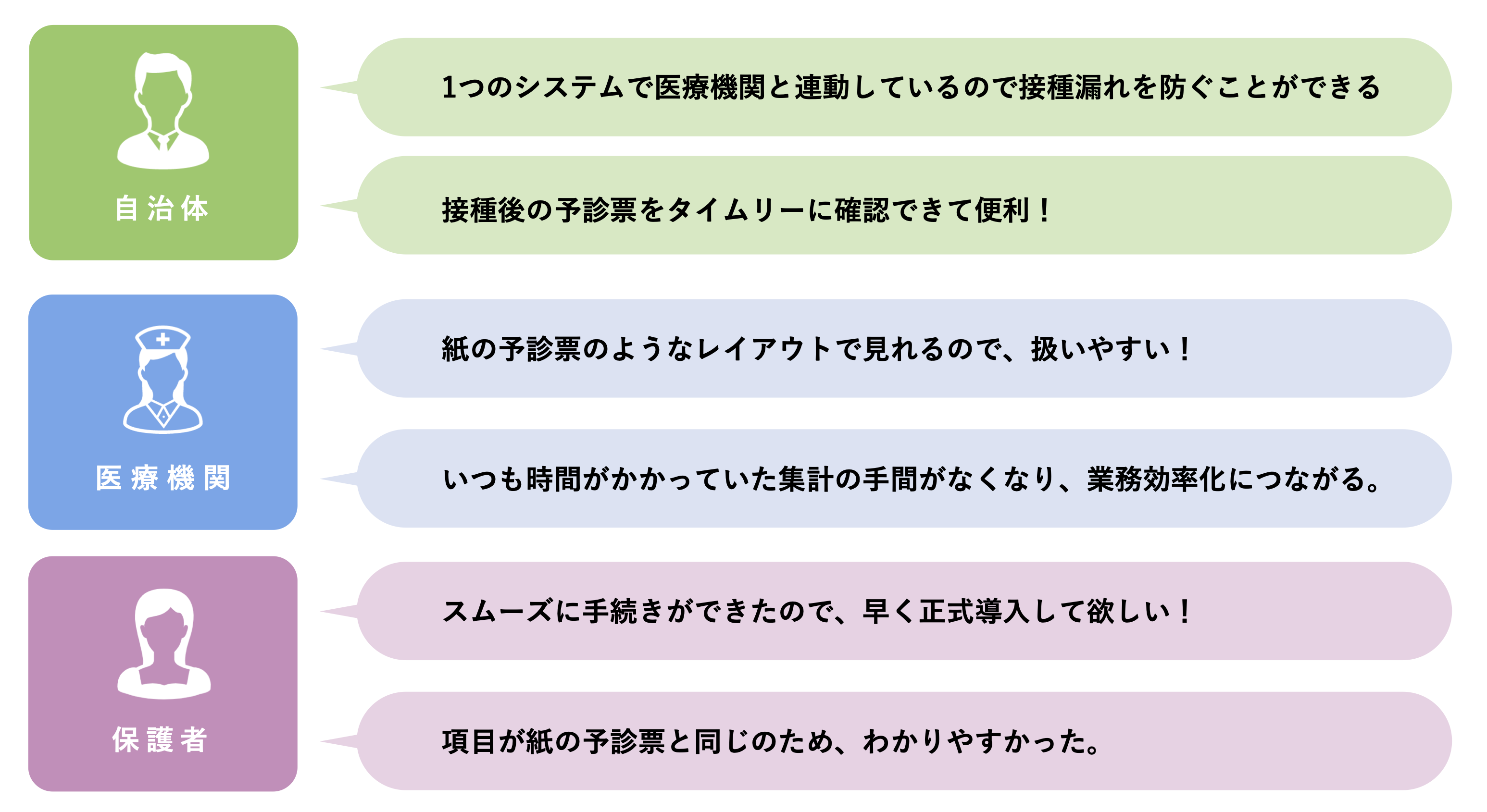 実証実験プロジェクトにご協力いただいた自治体・医療機関・保護者の方より、たくさんのお声をいただいております。