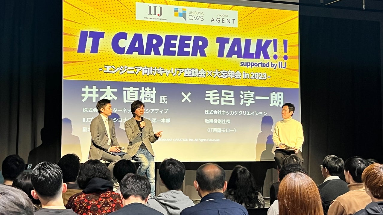 株式会社キッカケクリエイション(所在地:東京都渋谷区渋谷1丁目3-9 ヒューリック渋谷一丁目ビル6F、代表・川島我生斗)は2023年12月16日、渋谷スクランブルスクエア 15階 渋谷キューズ スクランブルホールにてキッカケクリエイション主催『IT CAREER TALK!! supported by IIJ』を開催しました。