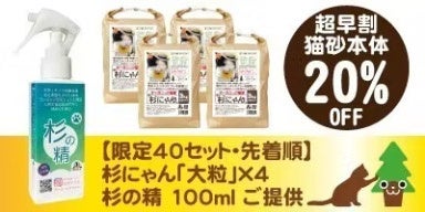 ・オーガニック猫砂 杉にゃん 大粒 4袋+杉の精100ml無料提供 (支援金4,220円+送料:1,100円)