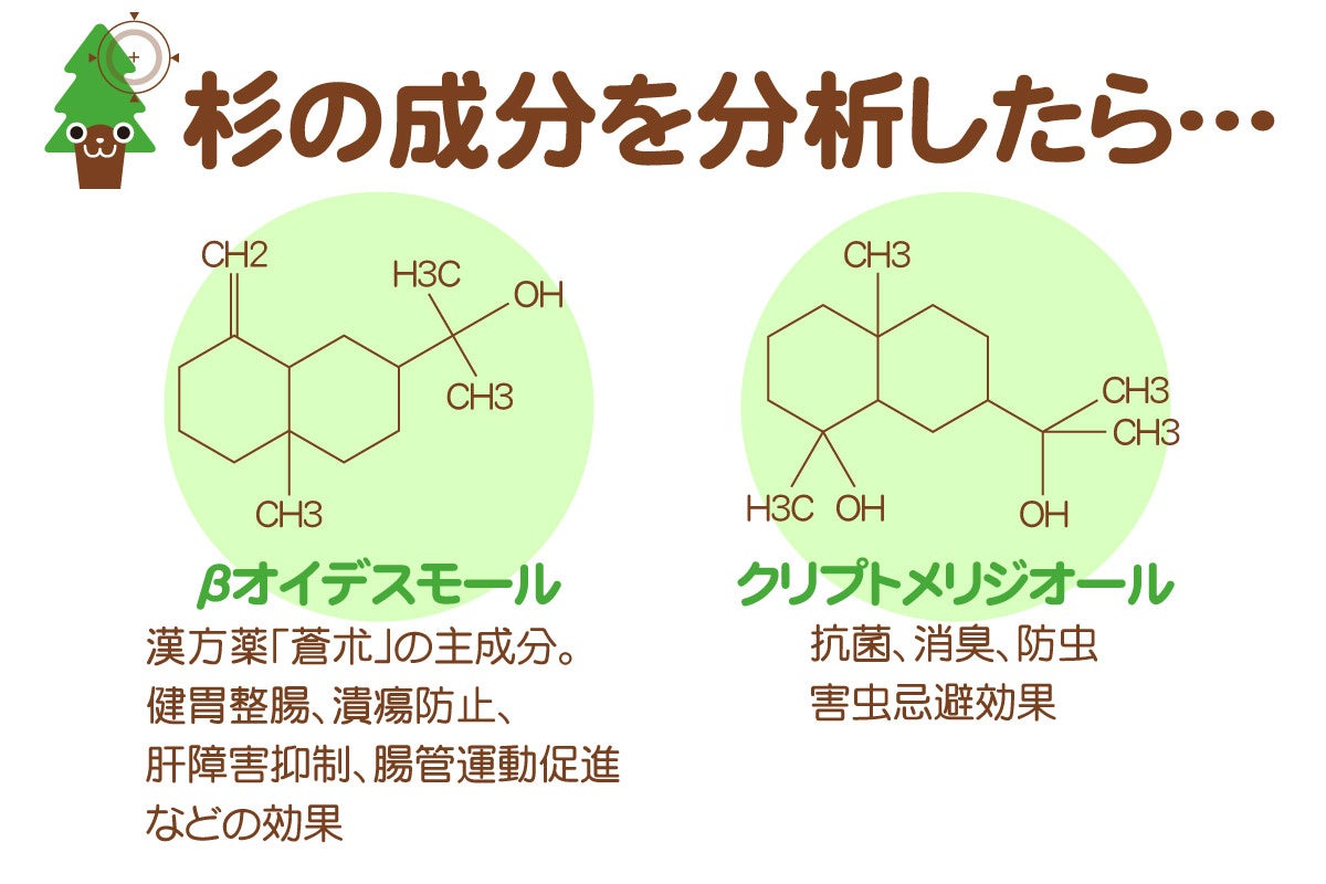 ・杉の有効成分には、専門家の研究により「リラックス効果」、「森林浴効果(ドイツでは森林浴は正式な医療行為として認められております)」などが報告されています。