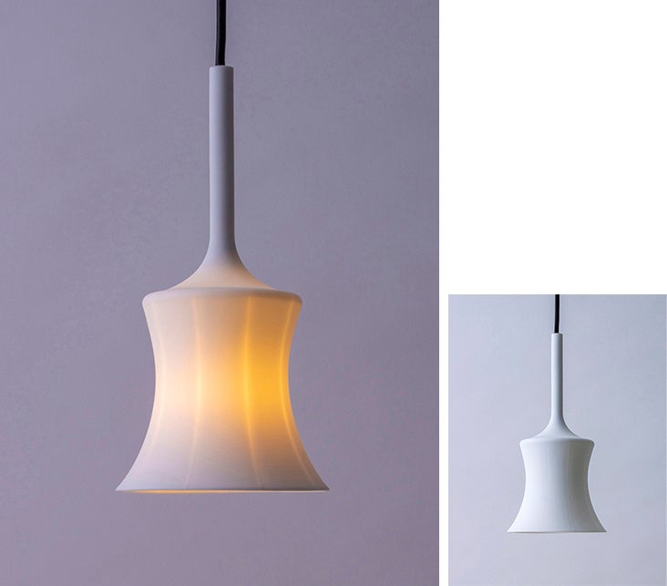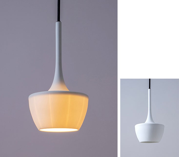 シリーズ名にあります「mono-P」は、セードから傾きを防止するパイプ部分までを有田焼磁器で一体成型で焼成し、白磁で表現した優しいフォルムが特徴です。香蘭社の高度な技術でこれまでにない型状とデザインを表現することに成功しました。優しいフォルムから透ける、上質な“光”が印象的なダイニングペンダントとテーブルスタンドをラインナップしました。