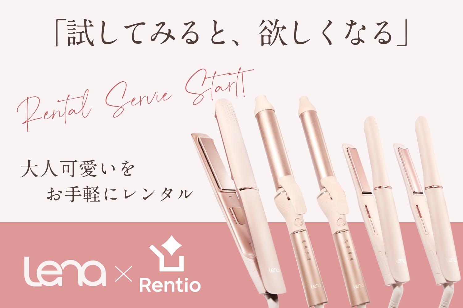 株式会社Lena(本社:東京都中央区、代表取締役:朝比奈志郎)は、レンティオ株式会社(所在地:東京都品川区、代表取締役社長:三輪 謙二朗)が運営する家電のサブスク・レンタルサービス Rentio(レンティオ)と提携し、ヘアケア家電ブランド「Lena(リナ)」の人気ヘアアイロンのレンタルサービスを開始いたしました。また、サービス開始を記念して、2025年3月1日(土)〜4月30日(水)まで、通常価格の50%OFFでレンタルできるクーポンを配布いたします。