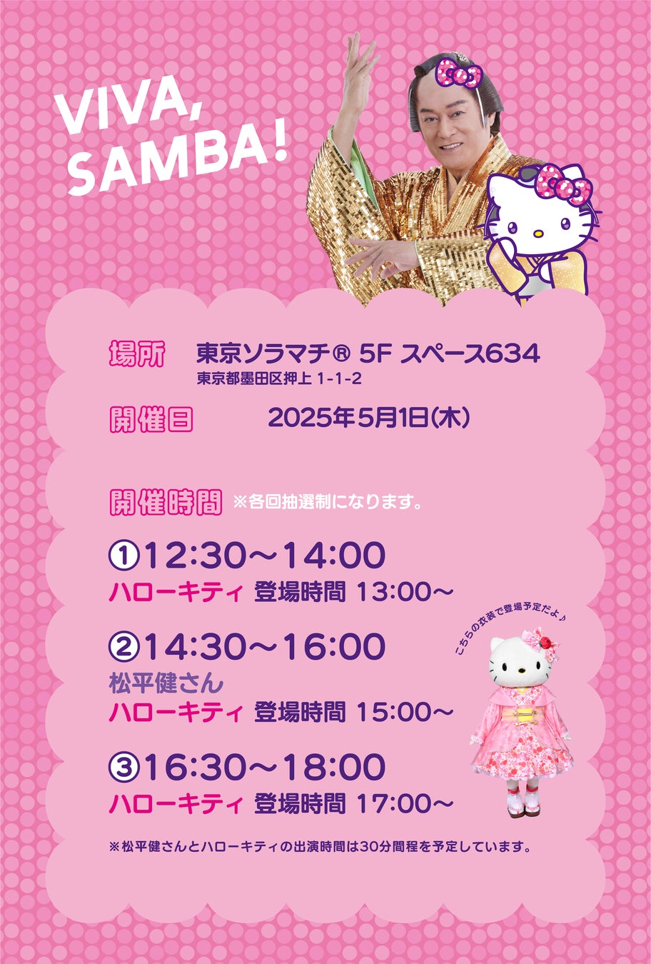 マツケンサンバとハローキティのコラボレーションを記念したスペシャルなイベントが開催決定!2025年4月26日(土)~5/11日(日)までの期間限定で東京ソラマチ®5階スペース634にて開催!!