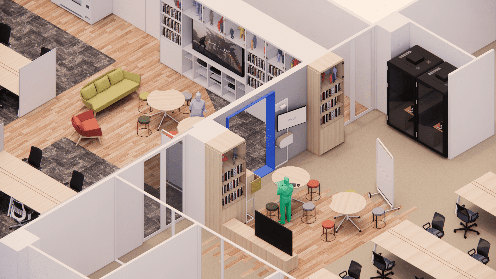 tonariを導入することで、大阪と東京のワークスペースを空間接続し、分散した拠点間でも「隣の席」にいる感覚で会話が生まれるようデザインしました。東京のメンバーと大阪のディレクターとのコミュニケーションにも役立ち、クリエイターが企画や開発に集中できる環境を実現させました。