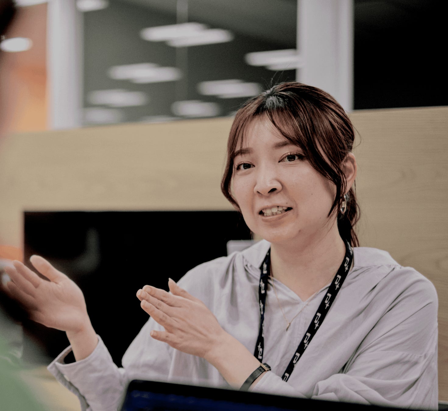 一年半前に大阪から転勤になり、東京のチームを定着させる役目を担いながら、2拠点にまたがる100名規模のプロジェクトのプロデューサーとしてもコミュニケーションづくりをとても意識しています。リモートだと自ら情報を取りに行きにくく、”ちょっと話したい”という距離感ではないため、大阪と東京を近づけるものを求めていました。tonariの向こうに大阪側がずっと見えている風景も当たり前になり、離れていても隣で話せる『座席感』が再現できつつあります。理想としてはプロジェクト毎にtonariを導入し、空間をどんどん広げていきたいです。