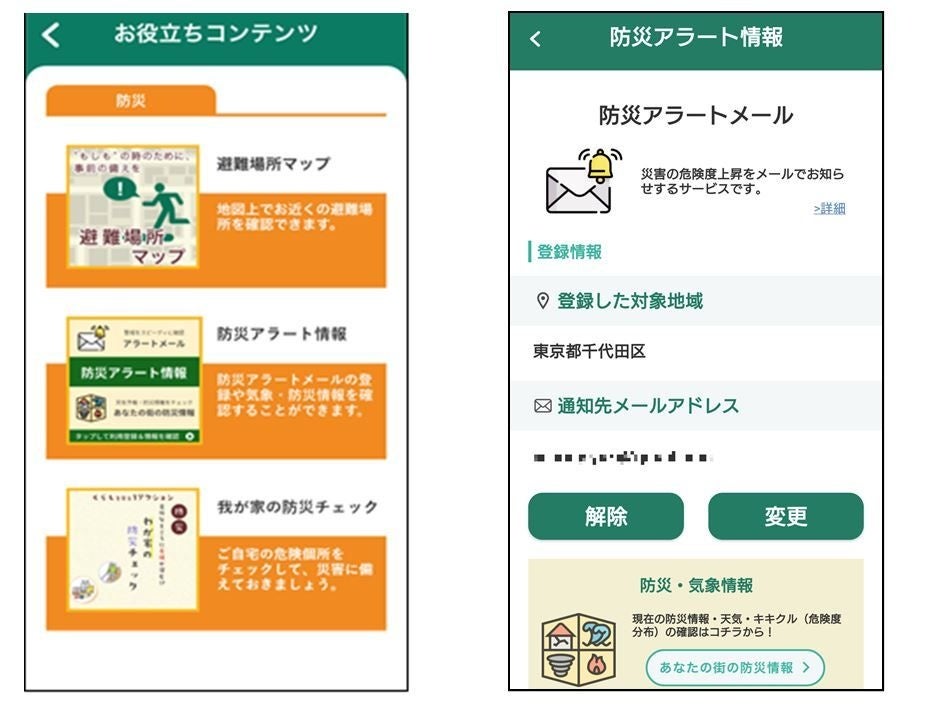 さらに、多発する自然災害に備えて、現在地から避難場所・避難所までの位置や道順を「JA共済アプリ」内の地図に表示する『避難所マップ』機能(本年7月に提供開始)と組み合わせてご利用いただくことで、災害発生時に、より安全・迅速に避難することができます。