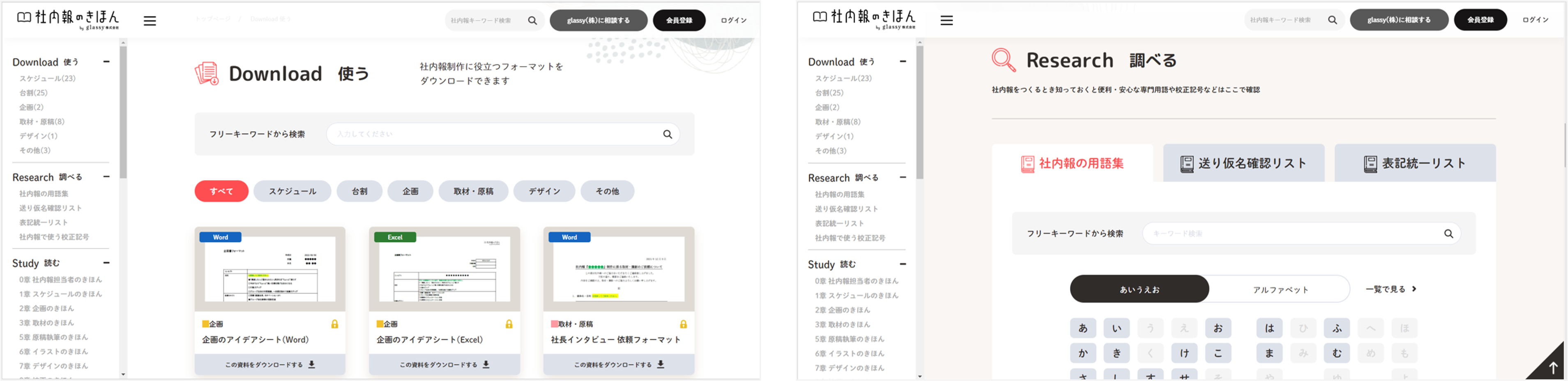この「社内報のきほん」は、「きちんとわかる、これならできる」をコンセプトに社内報制作を行う新任担当者に向けて作られた会員制の情報サイトです。これまで数多くの企業とその社内報を見てきたglassyが考える「社内報の担当になったばかりの方は、きっとこんなことを求めているはず!」という社内報の「きほん」を詰め込みました。