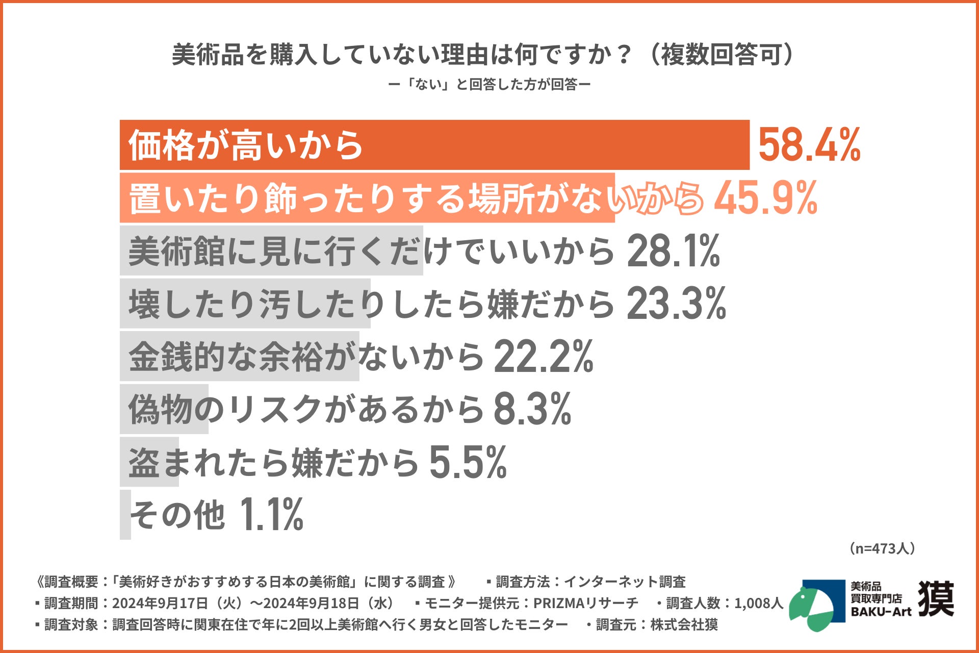 本物を求めようとすると価格が高いことや、レプリカの購入とはいえ保管場所などの問題で、美術品を購入していないことが示されました。