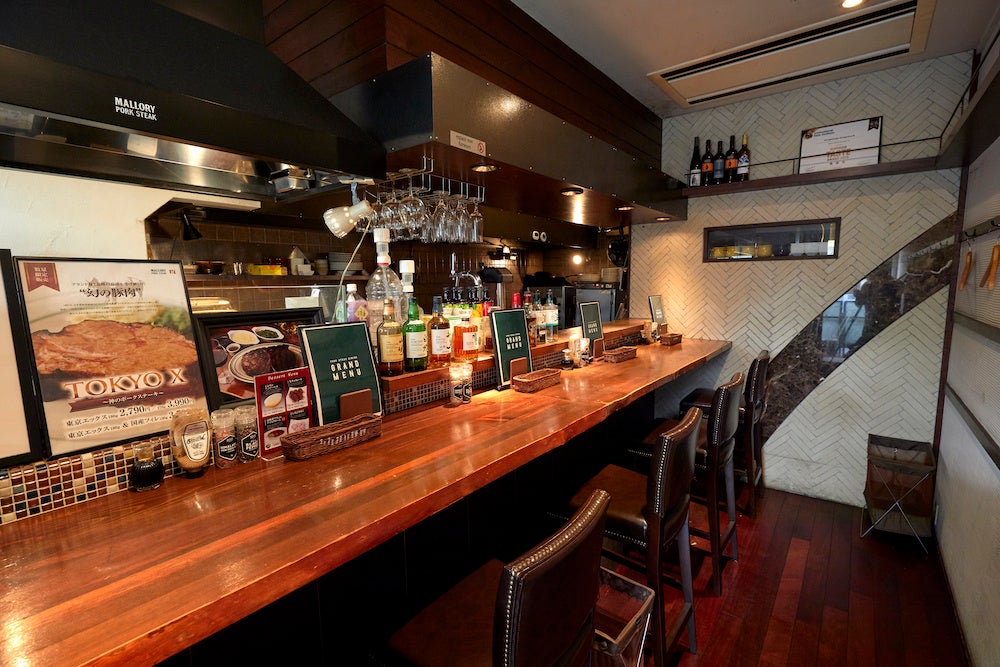 真空低温調理で火を通した豚肉を、仕上げにオーブンでクリスピー状に焼き上げた分厚いポークステーキの専門店。ナイフを入れるとしっかりした肉質ながらもあまりのやわらかさに感動を覚える。