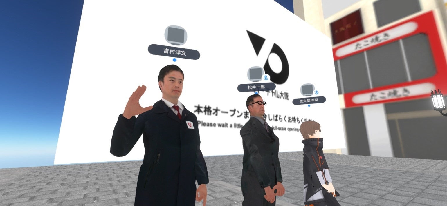 新たに公開された「バーチャル大阪 新市街エリア」内にて、カウントダウンセレモニーを開催し、「AVATARIUM」で作成した吉村大阪府知事、松井大阪市長等がアバターで登壇しました。本格展開への想いや今後の展望等を語り本格オープン及び新エリア公開を記念して、テープカットやカウントダウンを実施し、本格展開への想いや今後の展望等を語りました。