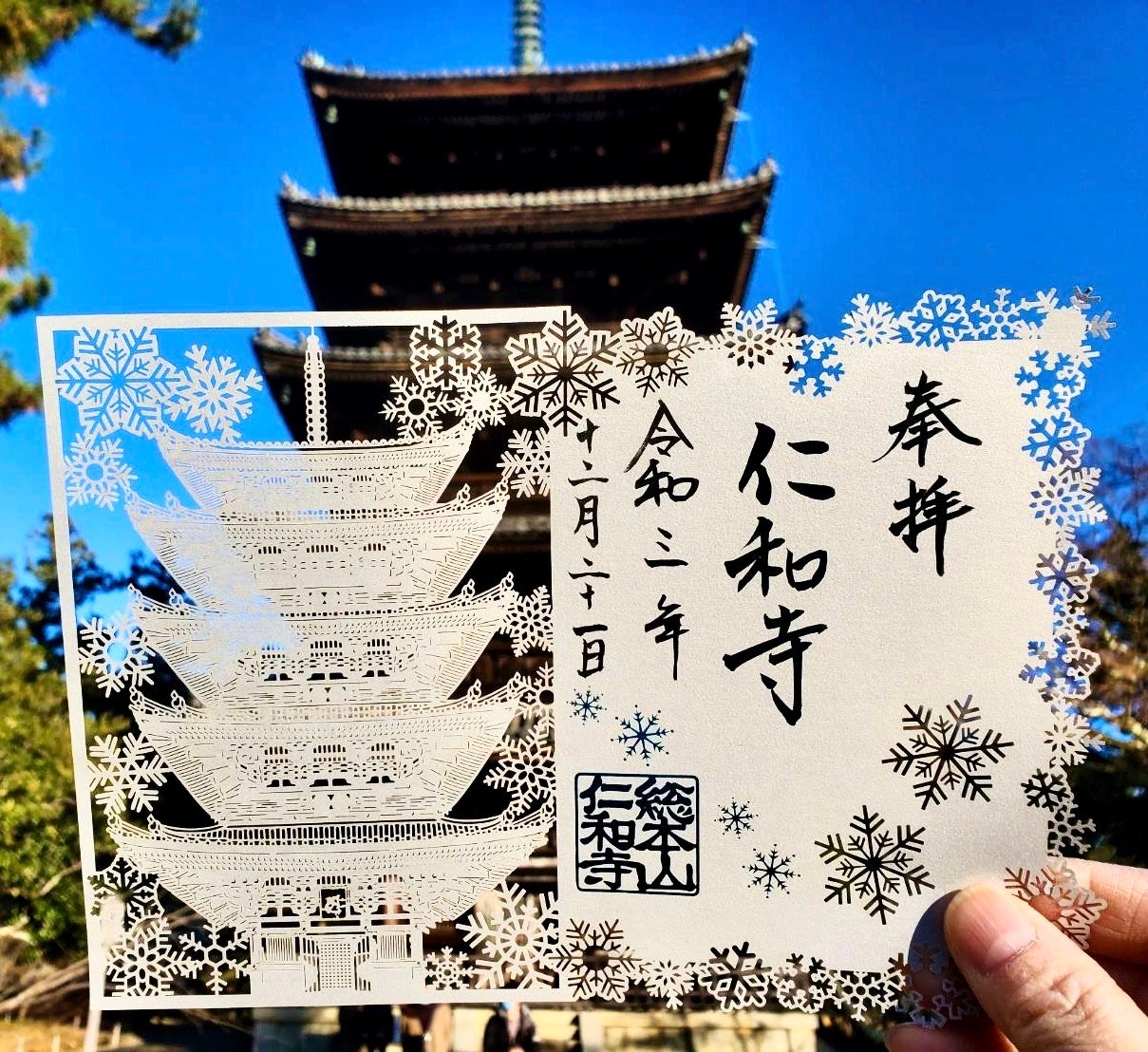 京都の世界遺産 仁和寺にて新たに2種類の冬限定切り絵御朱印『白銀の五重塔』『仁和寺御所庭園』の授与開始