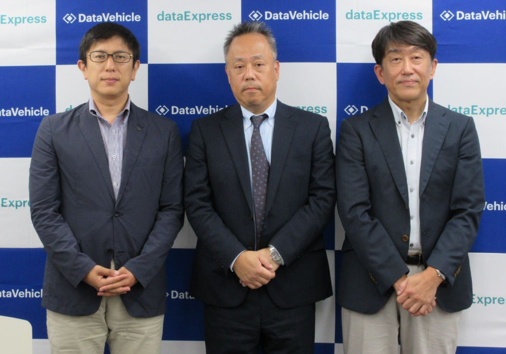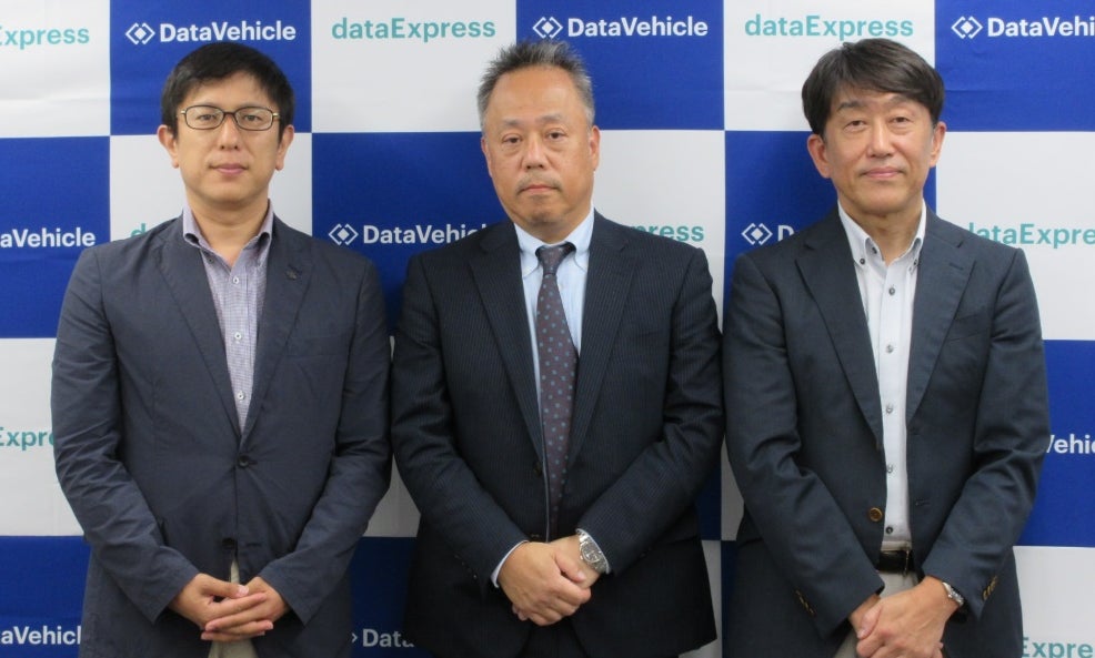 左より株式会社データビークル 常務取締役COO兼CFO 山崎将良/同 代表取締役CEO 油野達也/同 取締役ビジネス開発部部長 山本羊一