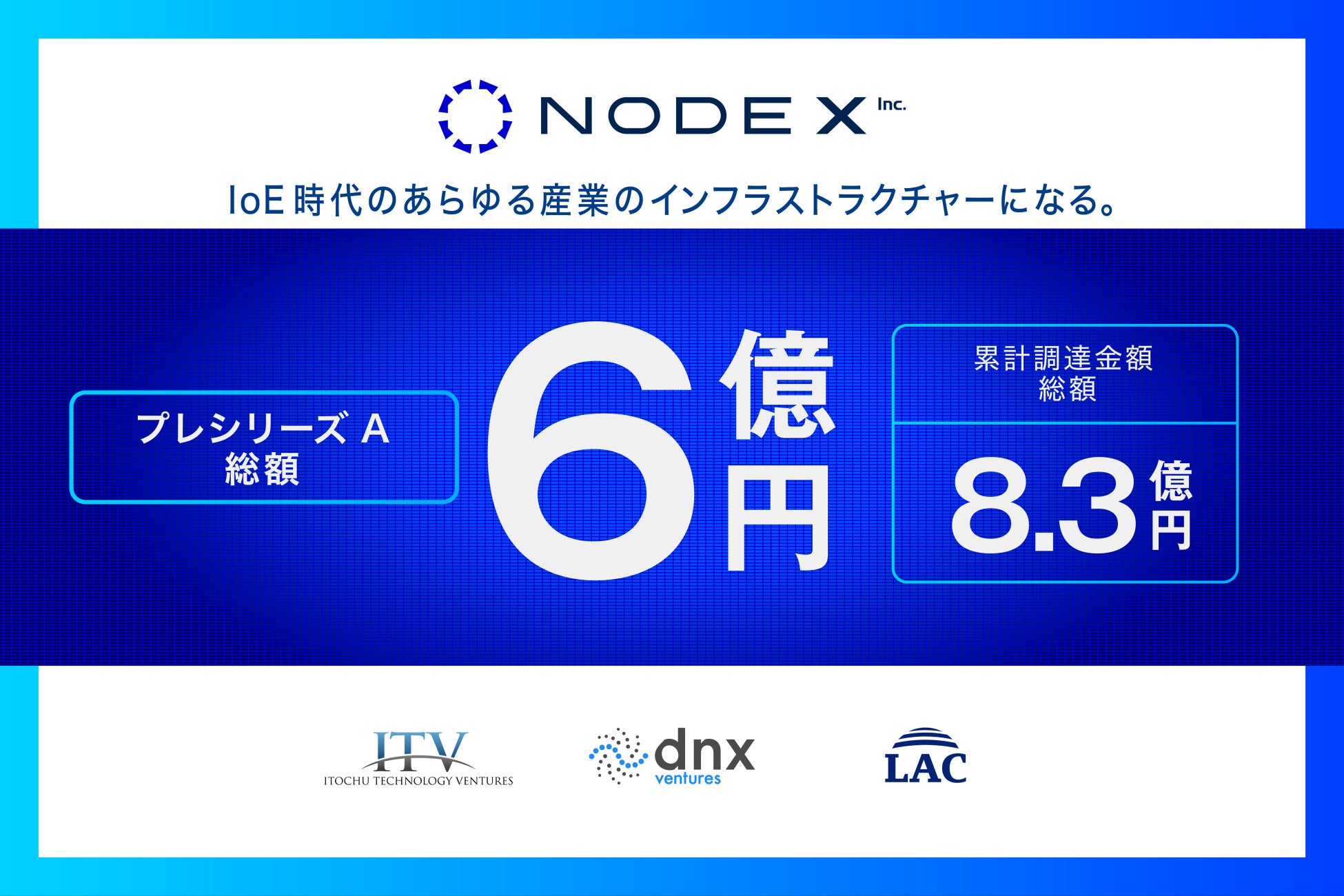 2025年2月21日 – NodeX株式会社(本社:東京都、代表取締役CEO 三井正義)は、DNX VenturesおよびITOCHU Technology Venturesより、新たに総額6億円の資金調達を実施しました。これにより、累計調達額は8.3億円となります。今回の調達により、IoT向けゼロトラストデータ基盤のさらなる進化と、初期顧客の成功を加速させるプロダクト&デリバリーチームの強化を進めます。また、社名変更を実施、ブランドを「NODE X(ノード・クロス)」に統一し、コーポレートサイトをリニューアルしました。