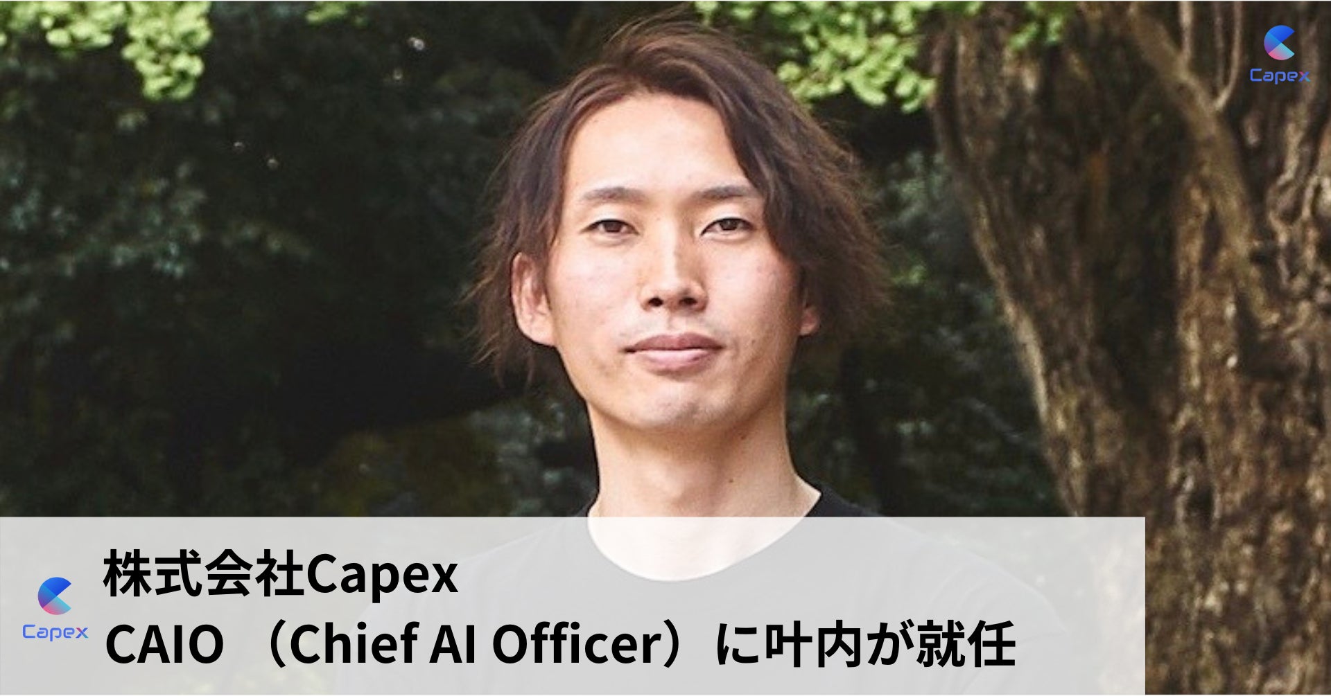 株式会社Capex(本社:東京都港区、代表取締役:小亀 俊太郎、以下「当社」)は、この度、CAIO(Chief AI Officer :最高 AI 責任者)に叶内 晨(かのうち しん)が就任したことをお知らせします。