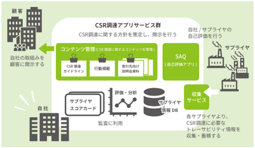 企業のCSR調達を実現するためのサプライヤ調査を管理し、評価および監査による改善活動を支援するデジタルサービスとして、『CSR調達サービス』を本年10月から提供開始します。多くのサプライヤを一括で調査管理し、早期にリスクを洗い出して改善活動に繋げることで、お客様のCSR調達活動をサポートします