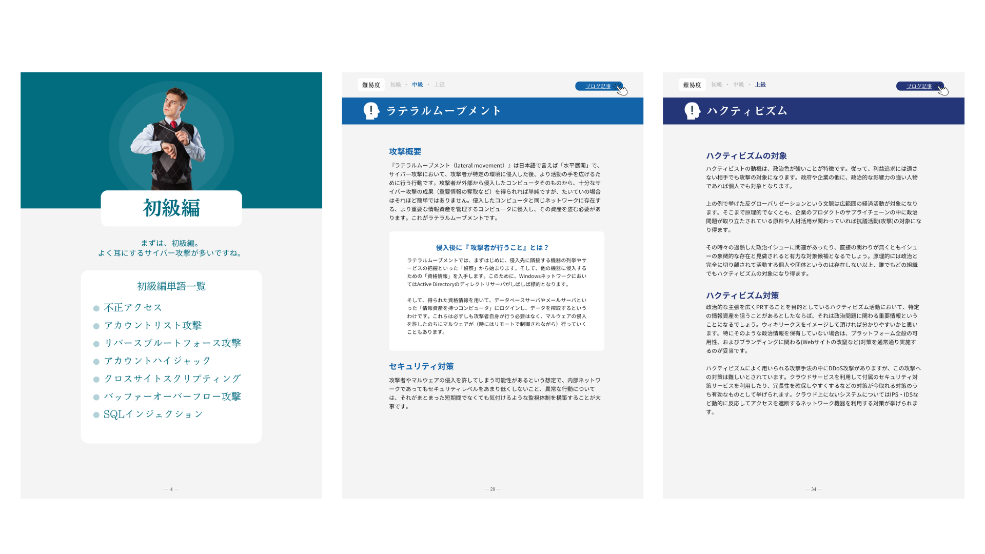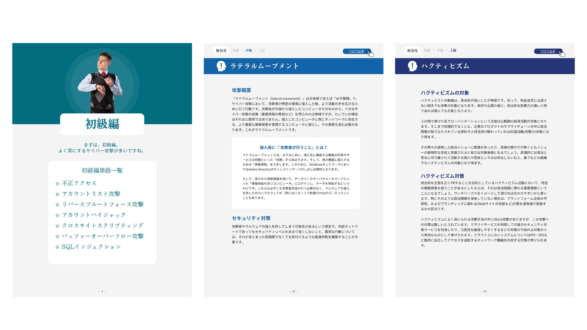 本資料では、17個のサイバー攻撃を難易度別にカテゴリ分け、その攻撃概要と対策について解説しています。また、各サイバー攻撃の解説の前に問題を設けています。まずはご自身の理解度を確認し、その後に解説を読んでいただくことで、より深い理解へとつながります。