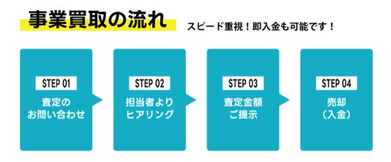ご契約から事業の引き継ぎ、売却金額のご入金まで一社で完結できます。仲介ではないため、仲介会社への手数料や報告なども不要、スピード対応が可能です。