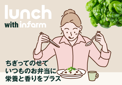 そんなときにインファームの野菜をちぎってのせるだけで、栄養と風味がアップします!