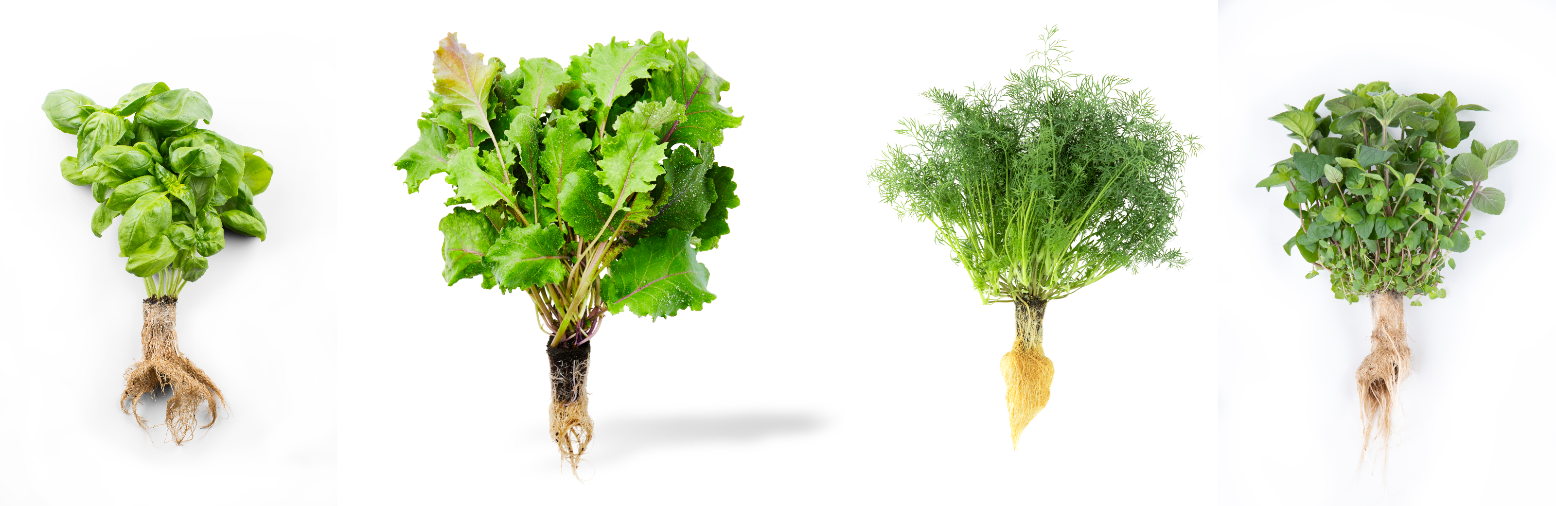 (左より、イタリアンバジル、スカーレットケール、ディル、ペパーミント)