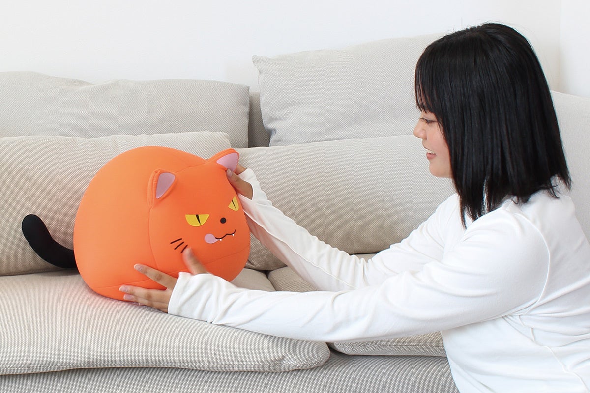 一見悪そうな表情とは裏腹にころんとしたフォルムが愛らしいクッション。本家の「もぐっち®み〜たん」の自称・ライバルで、ハロウィンに登場するかっこいい黒猫に変身して驚かせるつもりが、なぜか失敗してオレンジ色に。ちょっとまぬけなキャラクターですが憎めない存在です。