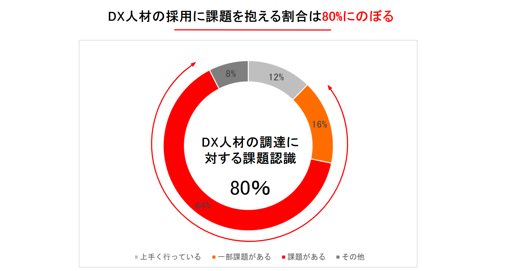 DX人材の採用に課題を抱える割合は80%にのぼる