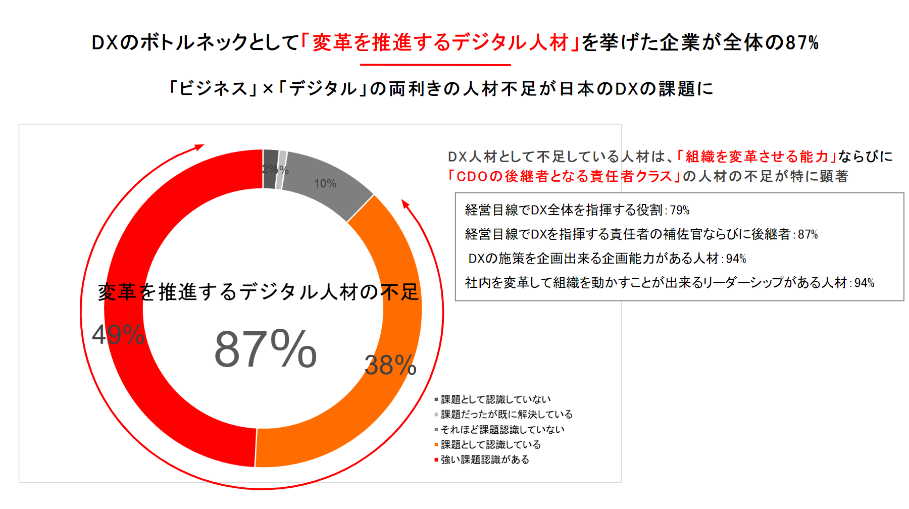 DXのボトルネックとして「変革を推進するデジタル人材」を挙げた企業が全体の87%