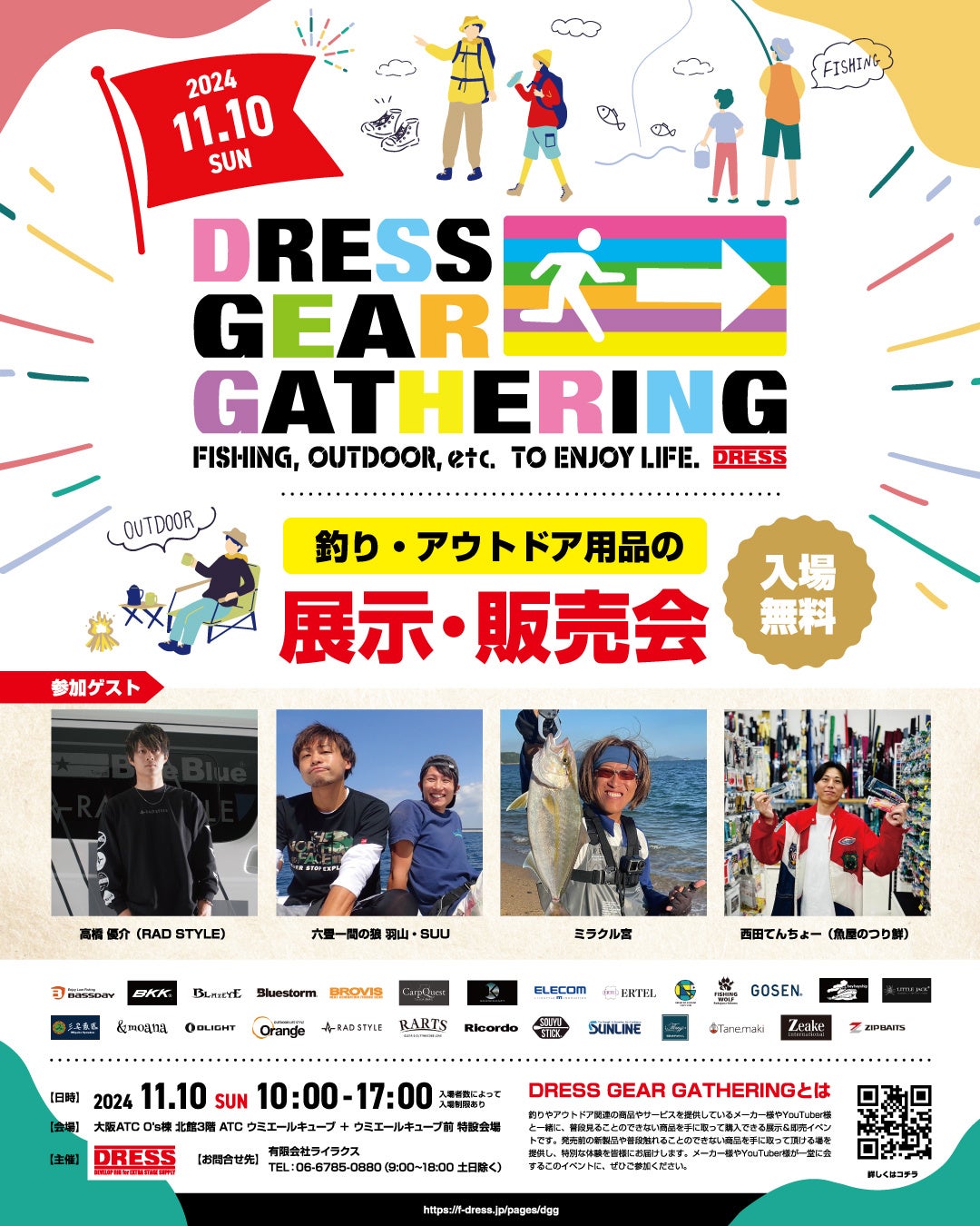 釣り好きやアウトドアファン必見!2024年11月10日(日) 大阪のATCウミエールキューブにて、注目のイベント "DRESS GEAR GATHERING"(通称DGG) が開催されます。