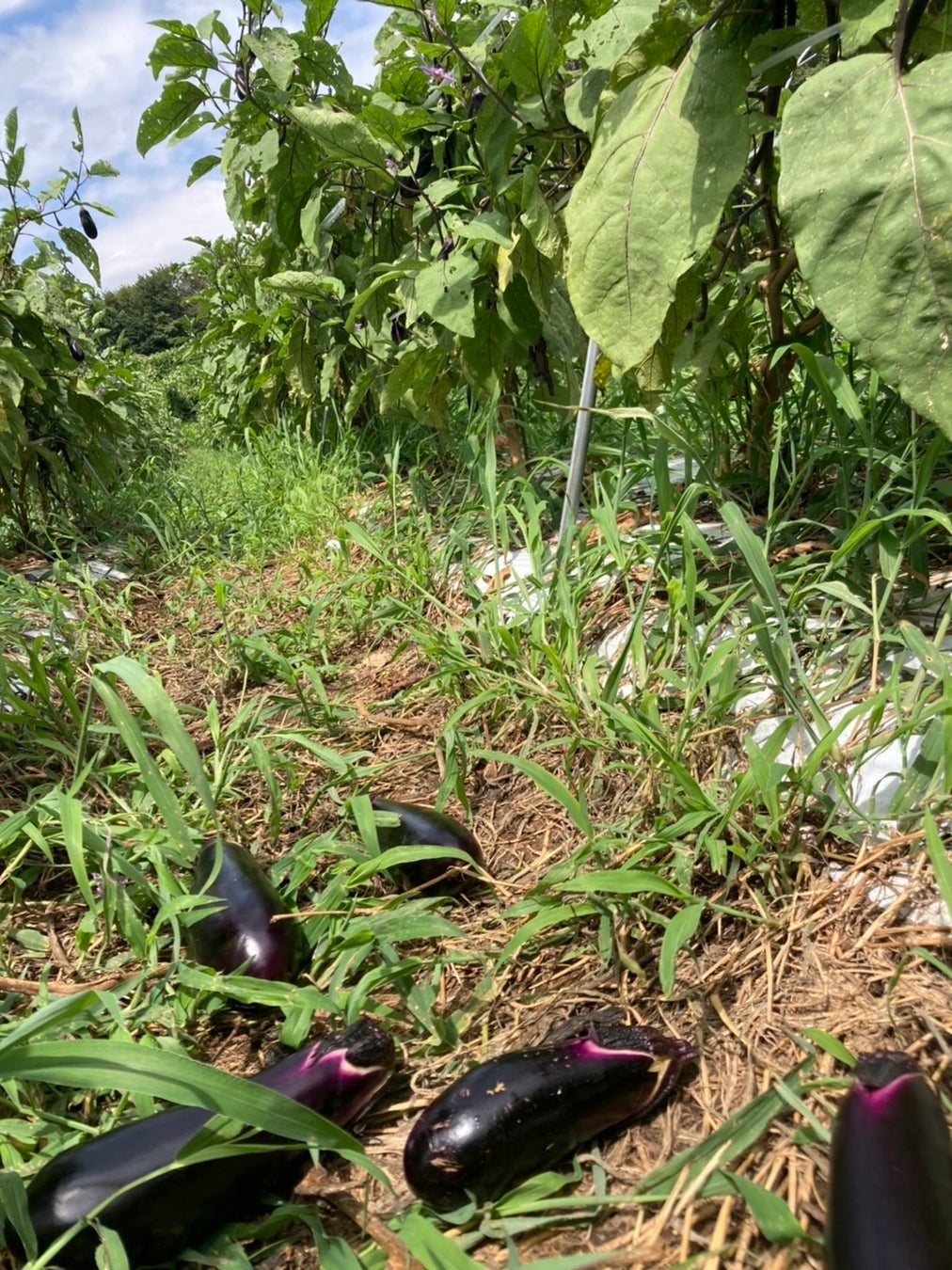 ナスやズッキーニ、キュウリやカボチャやトマトなどの夏野菜はまさに今が最盛期。午前中に収獲した畝を夕方見たら朝は小さかった作物が半日で大きくなっていて、慌てて暗い中もう一度収獲しなければならないほど、この時期はたくさんの夏野菜が採れます。その分、形が悪い規格外品も増え、更には猛暑の影響で卸先が減少し、旬で美味しいのに食べて貰えず棄てざるを得ない余剰品がたくさん出てしまいます。