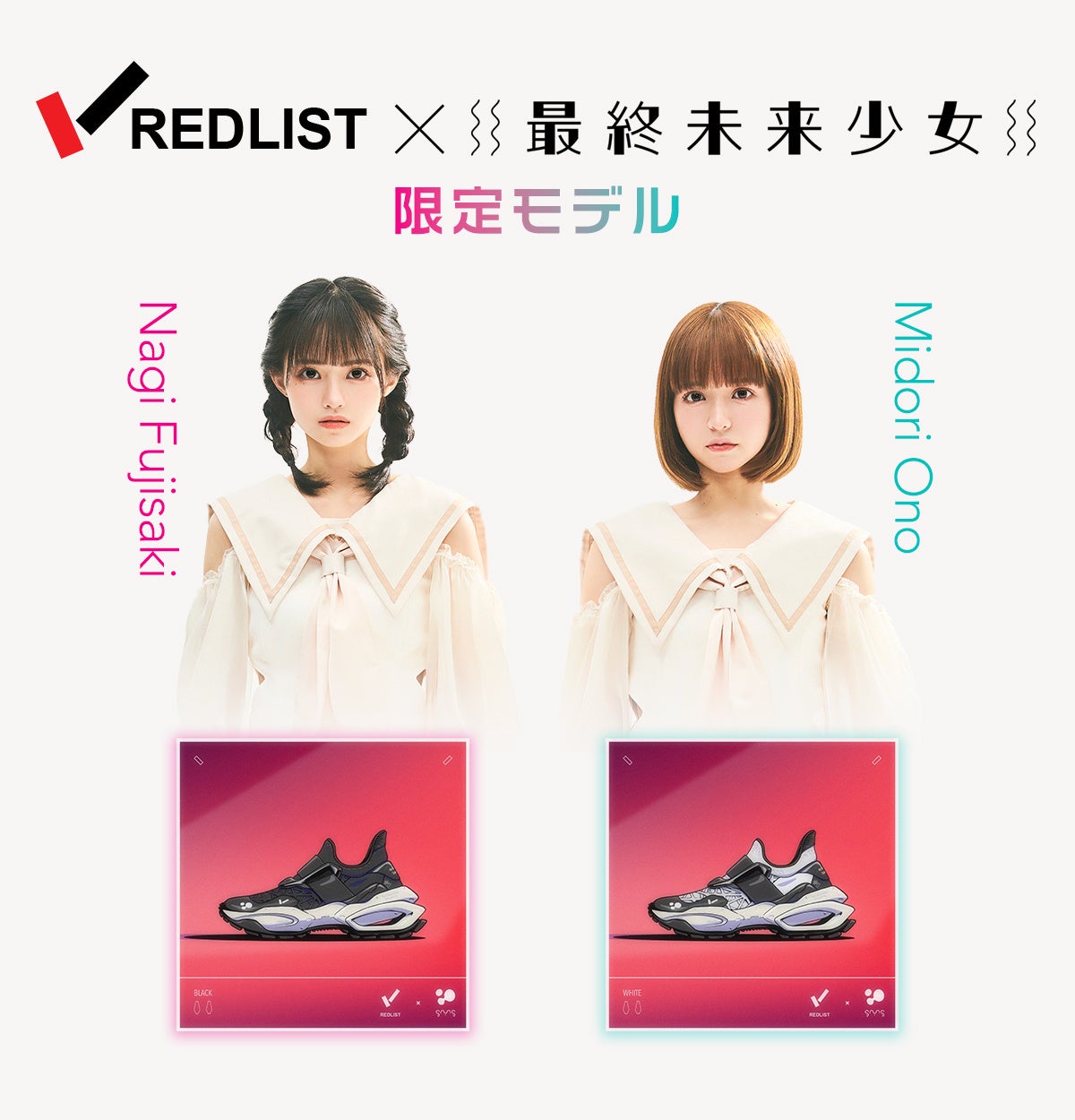 株式会社フリックフィット(本社:東京都渋⾕区 代表取締役 廣橋 博仁)が展開するスニーカーブランド「REDLIST(レッドリスト)」から、現実世界と仮想世界(NFT)を繋ぐアイドルユニット「最終未来少女」とのコラボNFT付きオリジナルスニーカーを数量限定予約発売します。