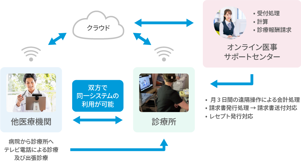 現在、粟島診療所では月3回の会計処理日に、弊社サービス担当者がオンラインで処理を行い、請求領収書の発行業務を行っています。