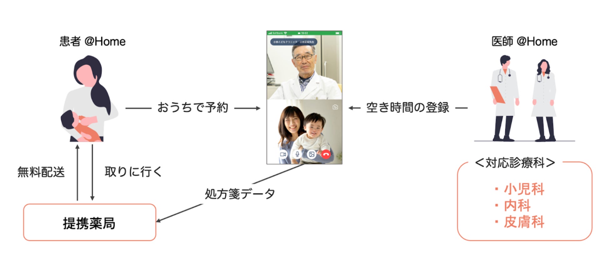 患者はオンライン診療を受診したのち、薬の処方も受けることができます箋発行を行います。薬の受け取りは薬局から自宅へ無料配送か、薬局へ取りに行くかを選ぶことができ、一気通貫した医療サービスを提供しています。配送の場合、服薬指導は電話で対応しています。